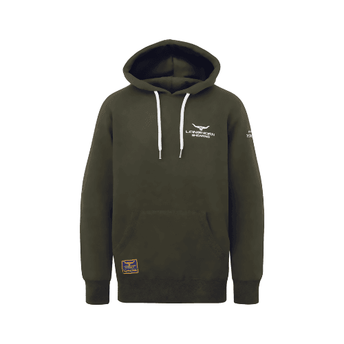 The Longhorn Signature Series hooded sweatshirt is a hard wearing, heavyweight design. The Longhorn logo is embroidered on the front and back with established date on left arm.